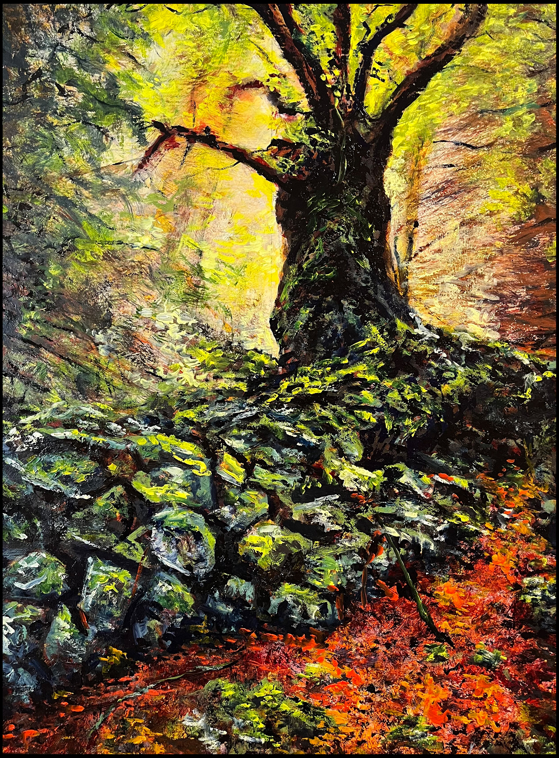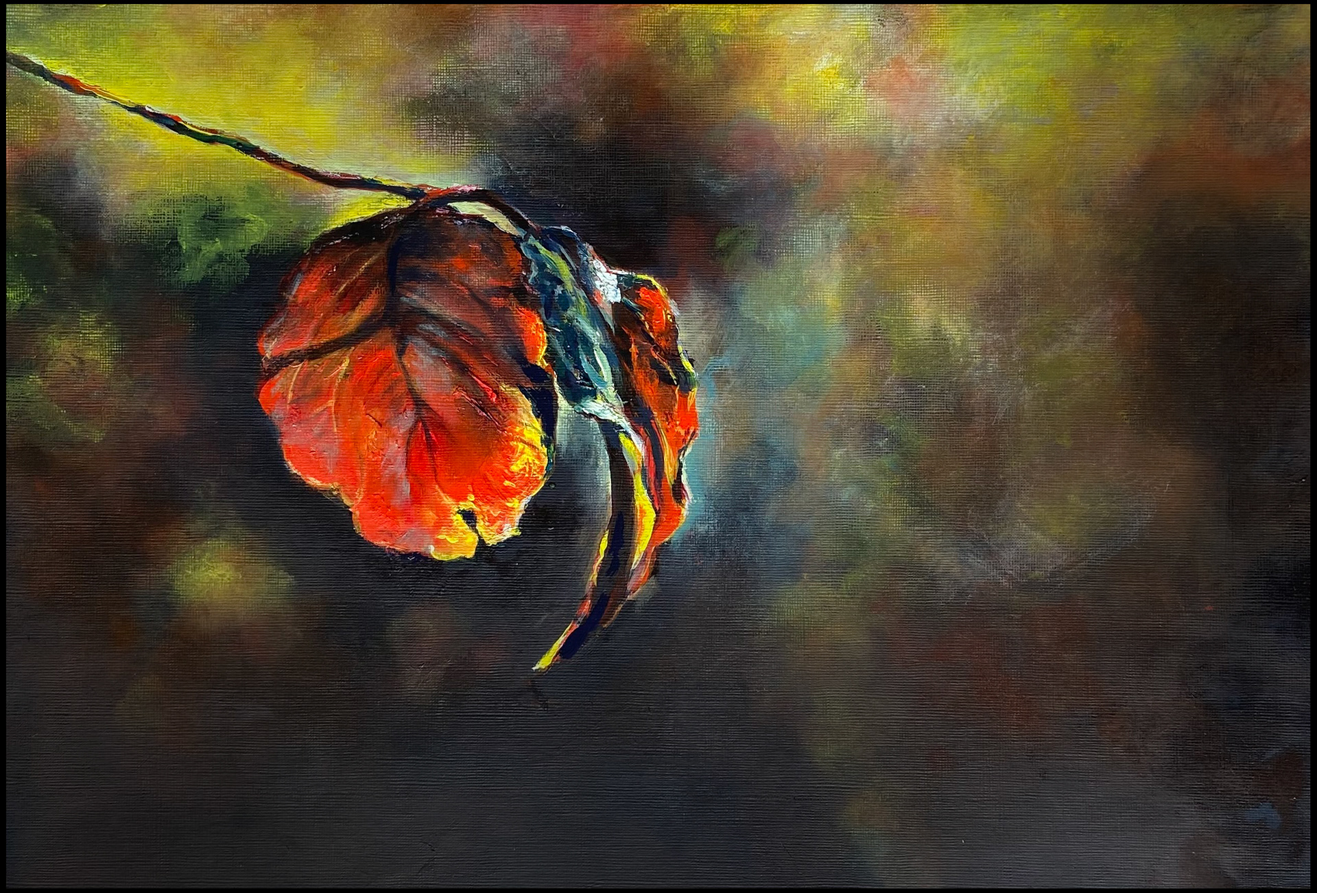 Sunlit Leaf, 2024. Oil on canvas paper. 58 x 48 cm. framed size. €205