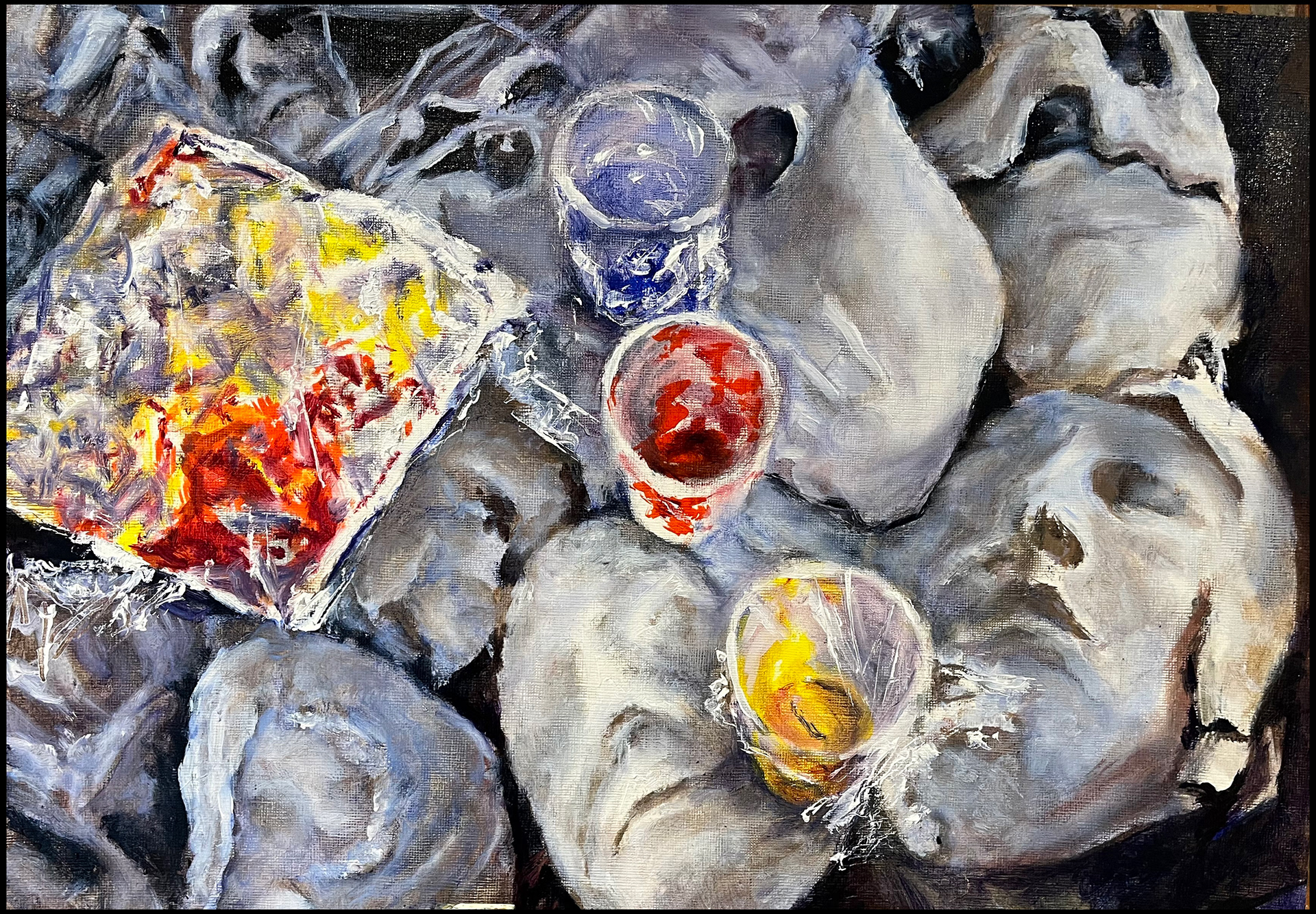 Palette Phantoms, 2024. Oil on canvas paper. 58 x 48 cm. framed size. €240