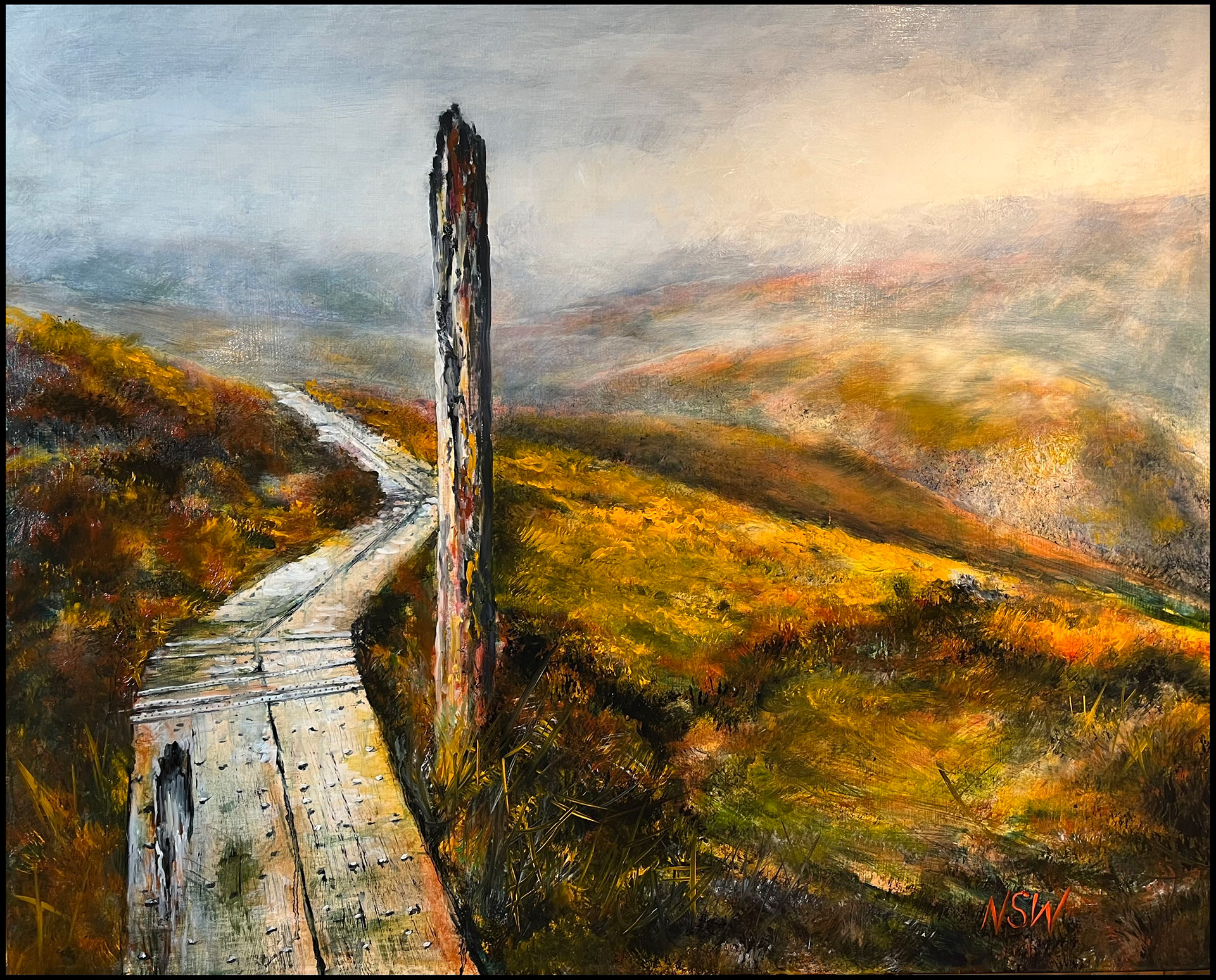 Glenealo Valley, west of Glendalough, 2025. Oil on wood panel 61 x 36 cm. SOLD